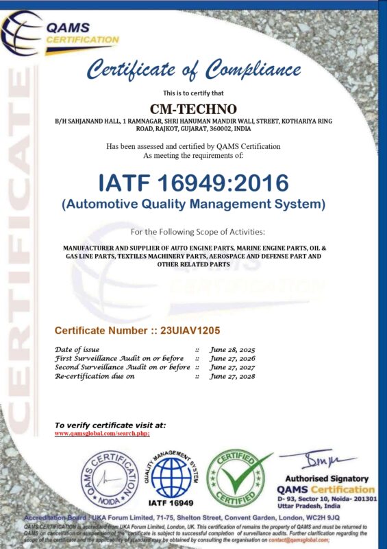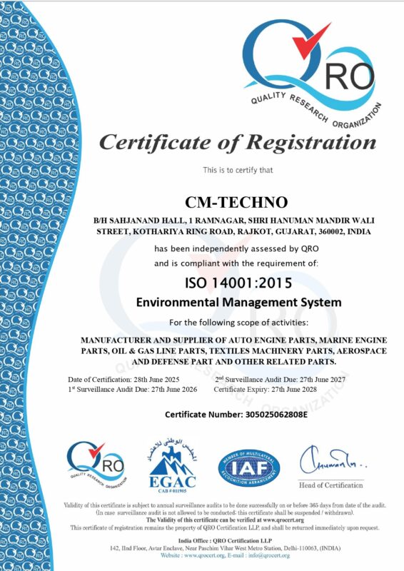 CM-TECHNO is ISO 9001:2015 certified Company